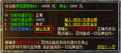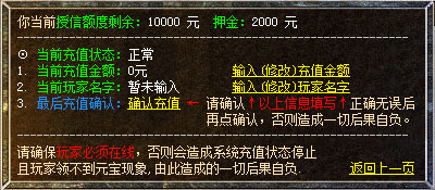 7. 第2项输入玩家的名字即可,系统会自动检测玩家的名字是否正确或在线与否,如遇到人物离线脱机(如离线摆摊)的情况一般会先充值,然后失败后返回额度,不用当心。