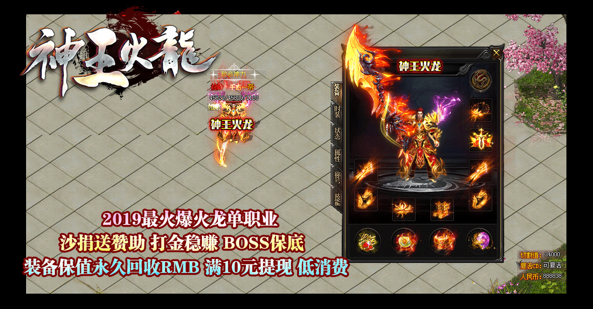 • 透明消费: 28元顶赞 双翻天 一键吃火龙币 爆率高 回收高 BOSS保底 10元提现
