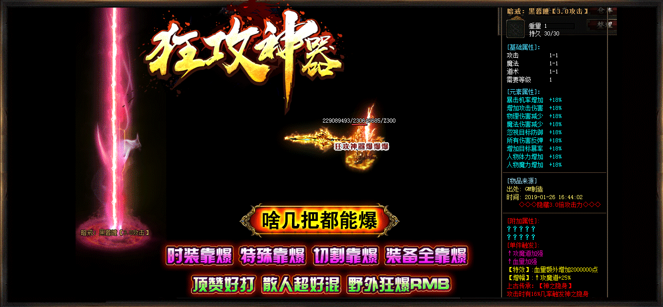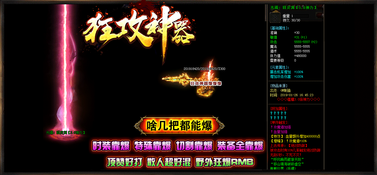 2020品牌大服-独家神器单职业《狂攻神器Ⅳ》版本介绍