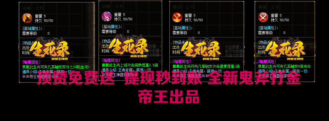 游戏介绍:本服所有装备全部都能爆到,所有地图无垃圾怪,是怪必定爆装备!!