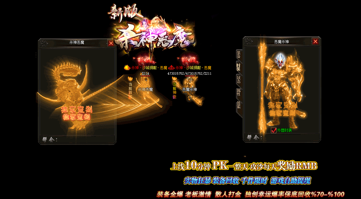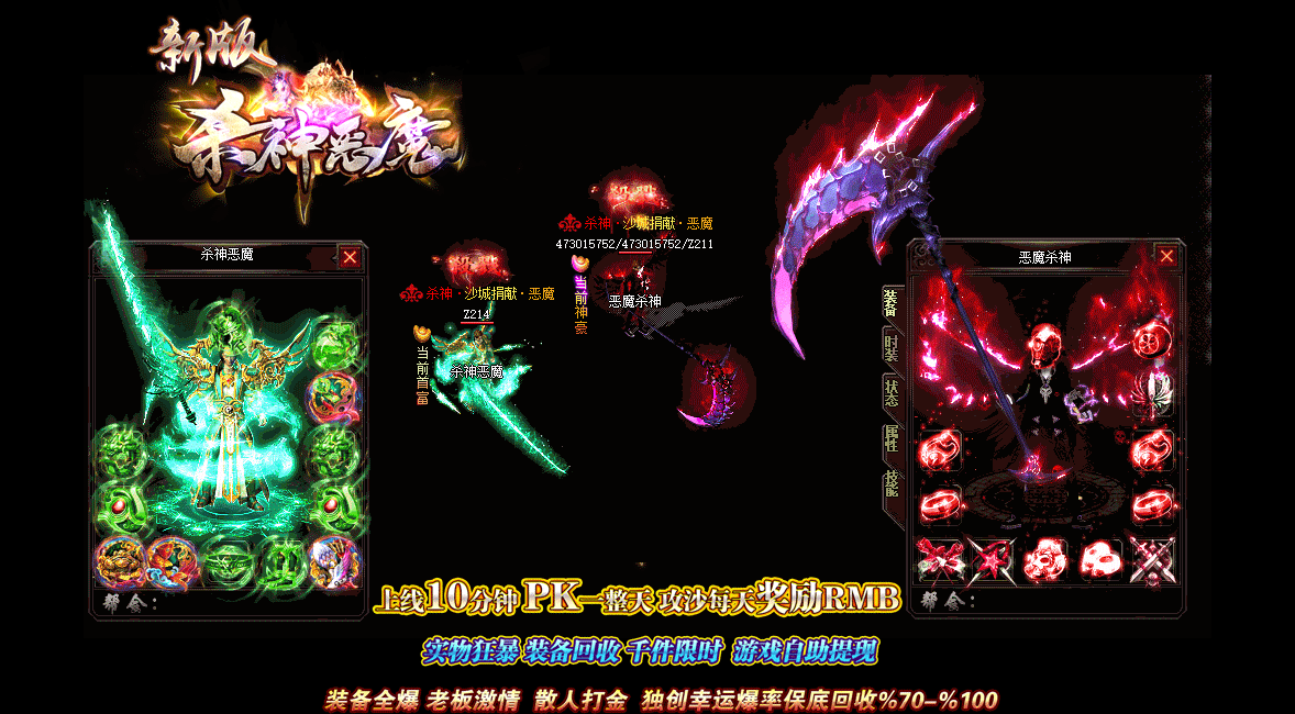 2019新版杀神恶魔 百万巨资打造 最火爆的传奇 打金提现秒到账