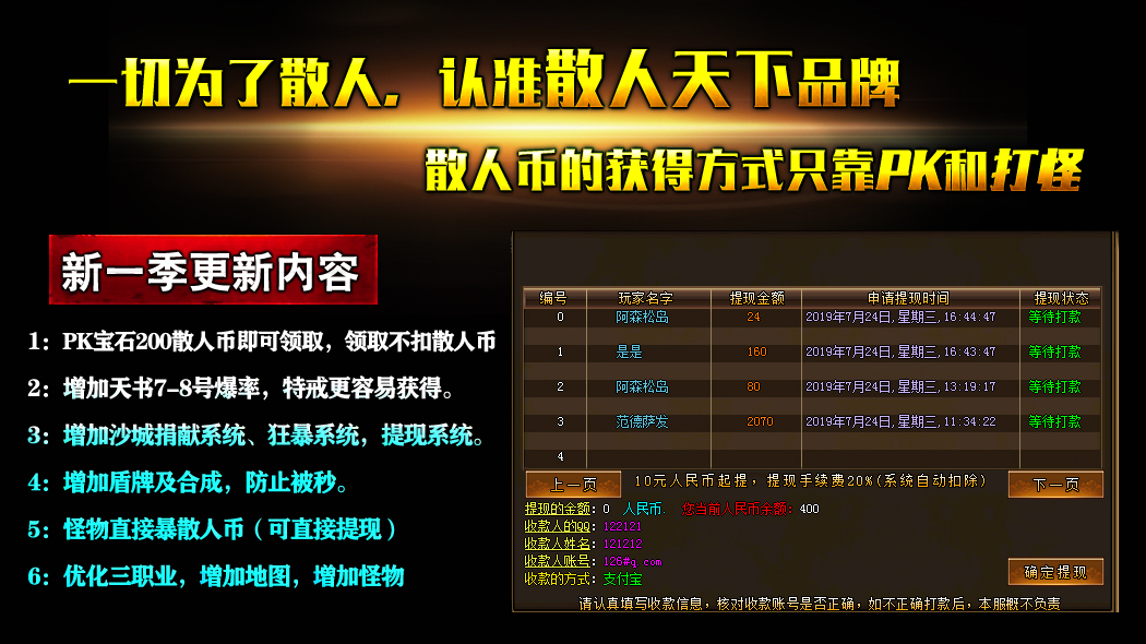 专为散人设计,无泡点地图,无首充地图,无会员地图,所有合成免费,无任何暗坑.