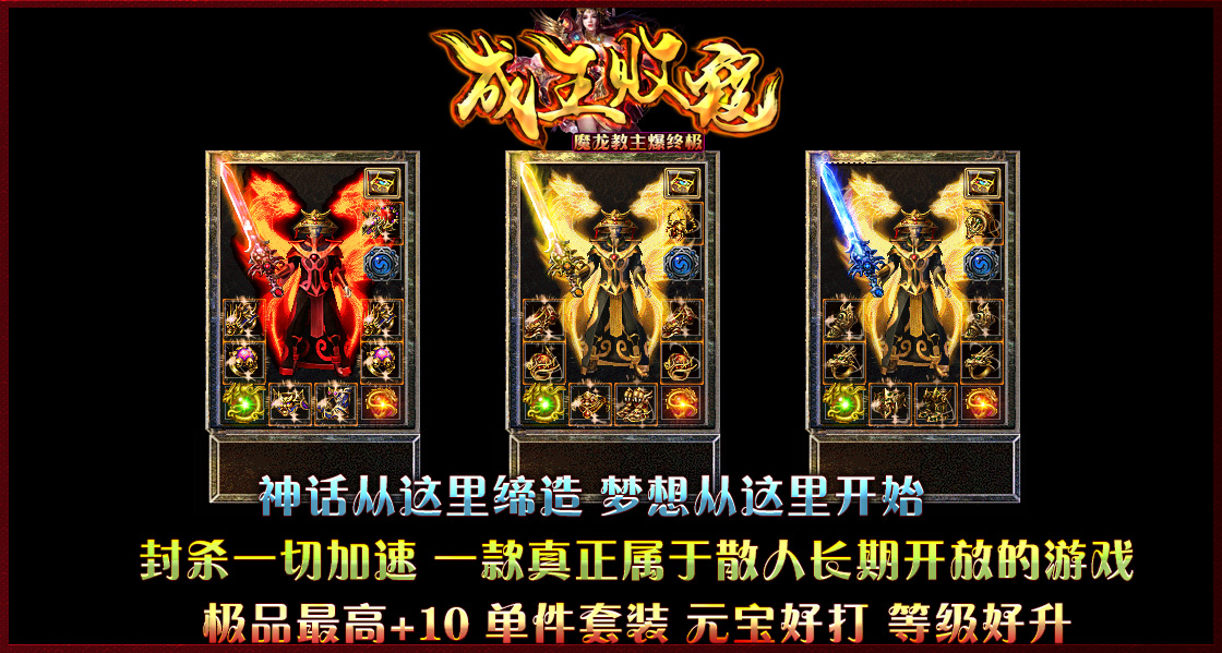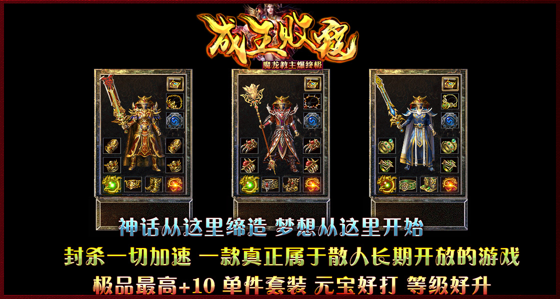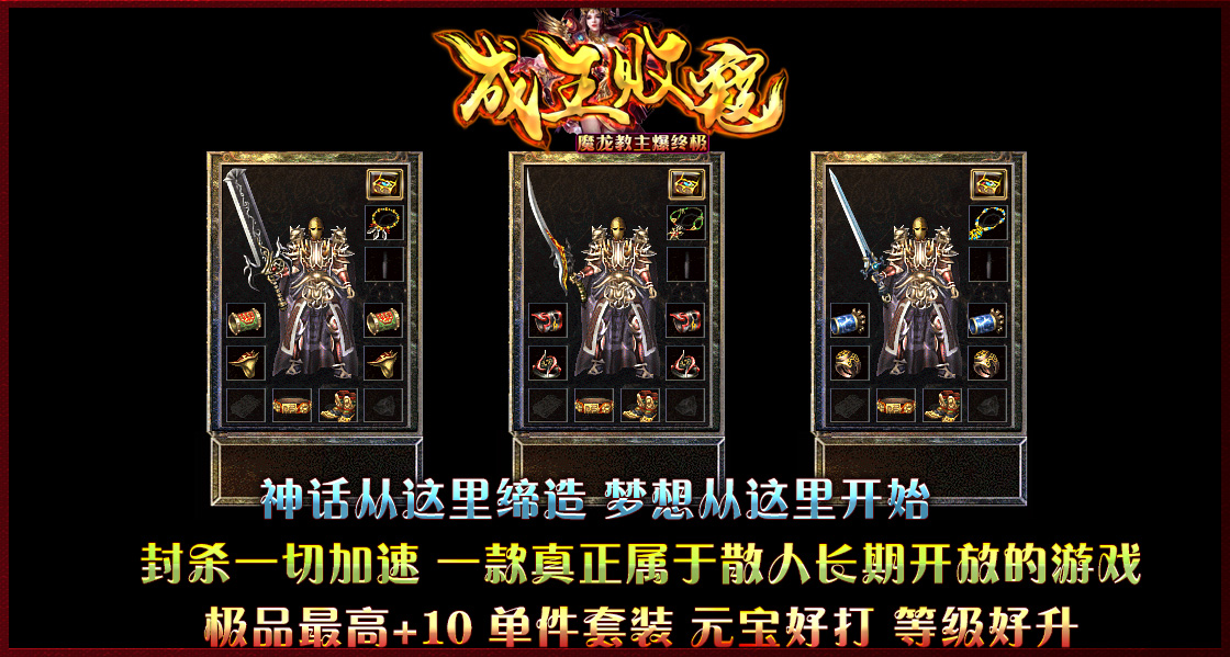装备层次:圣战 → 雷霆 → 战神 → 狂雷 → 火魔终极 → [ 魔龙教主爆终极火魔剑甲 ]!!!