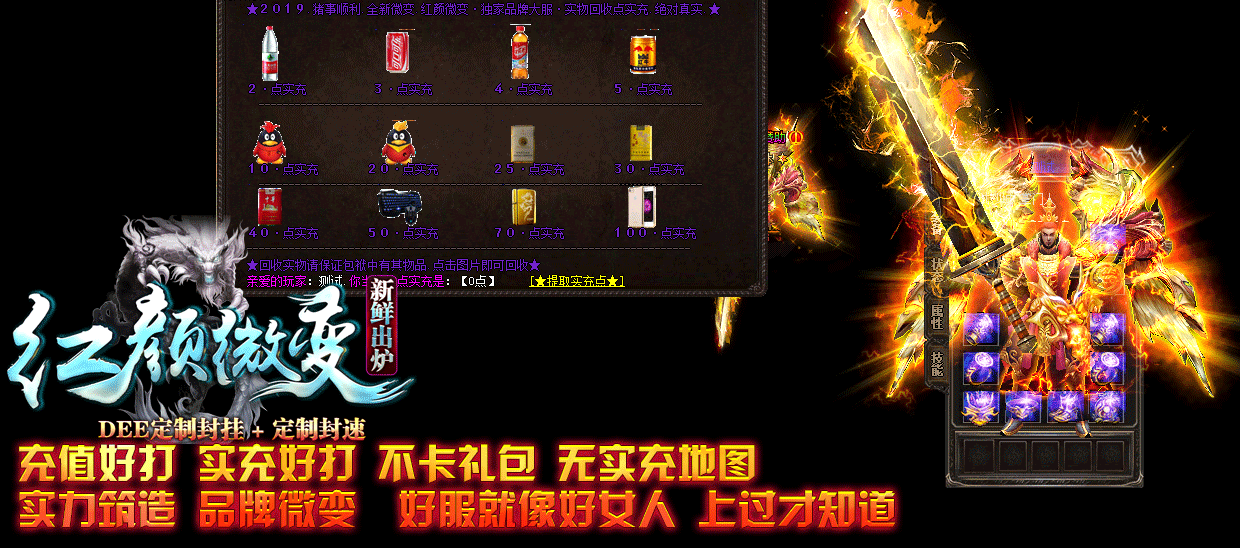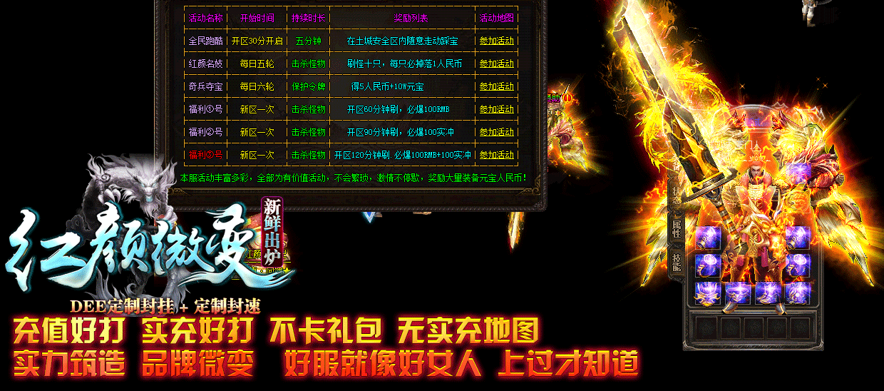 ⑧.充值赞助好打,小怪爆实冲,无实充地图,不卡礼包