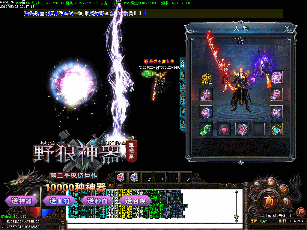 游戏比例:〖野狼币1:500 网银多送100%〗 【 RMB点1:1】【本服绝元比例。。每天重金广告】