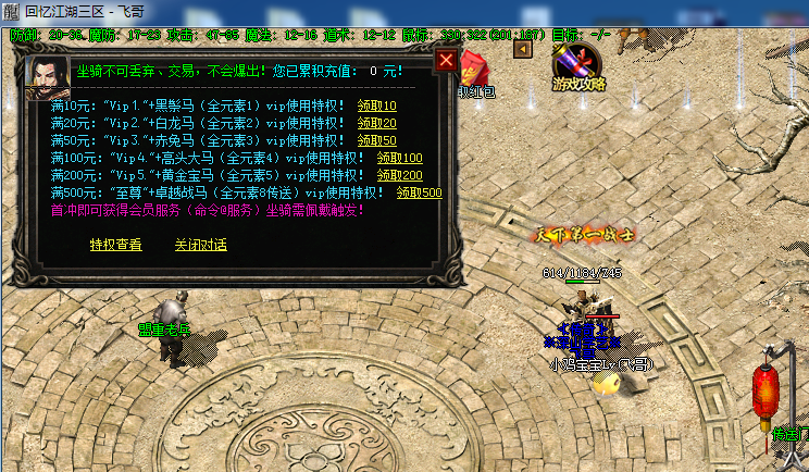 8、本服赞助系统只为前期好起步 而且也并不贵 分别 10 20 50 100 200 500 VIP功能强大分别赠送对应的马牌(加元素)