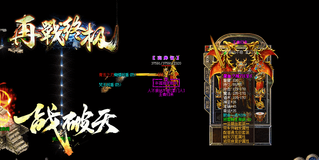 - 【装备等级】:降龙-毒龙-冰龙-火龙-惊龙-蝴蝶-梵天-青龙-龍血