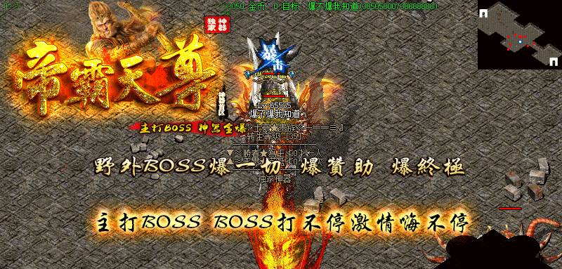 BOOS介绍:每一小时各大地图刷新大量BOOS!爆神器 特殊散件 充值积分 各大辅助材料