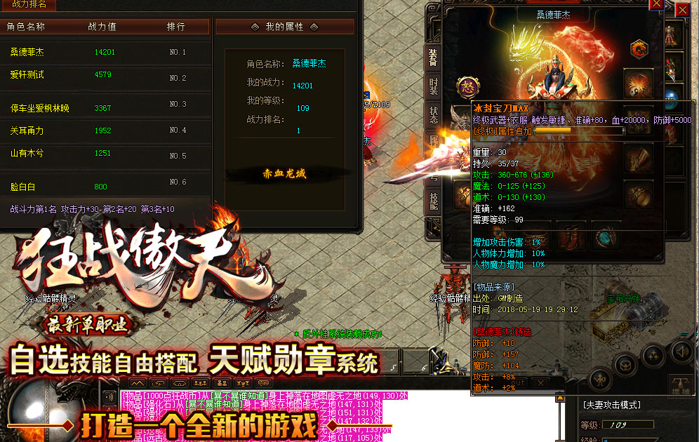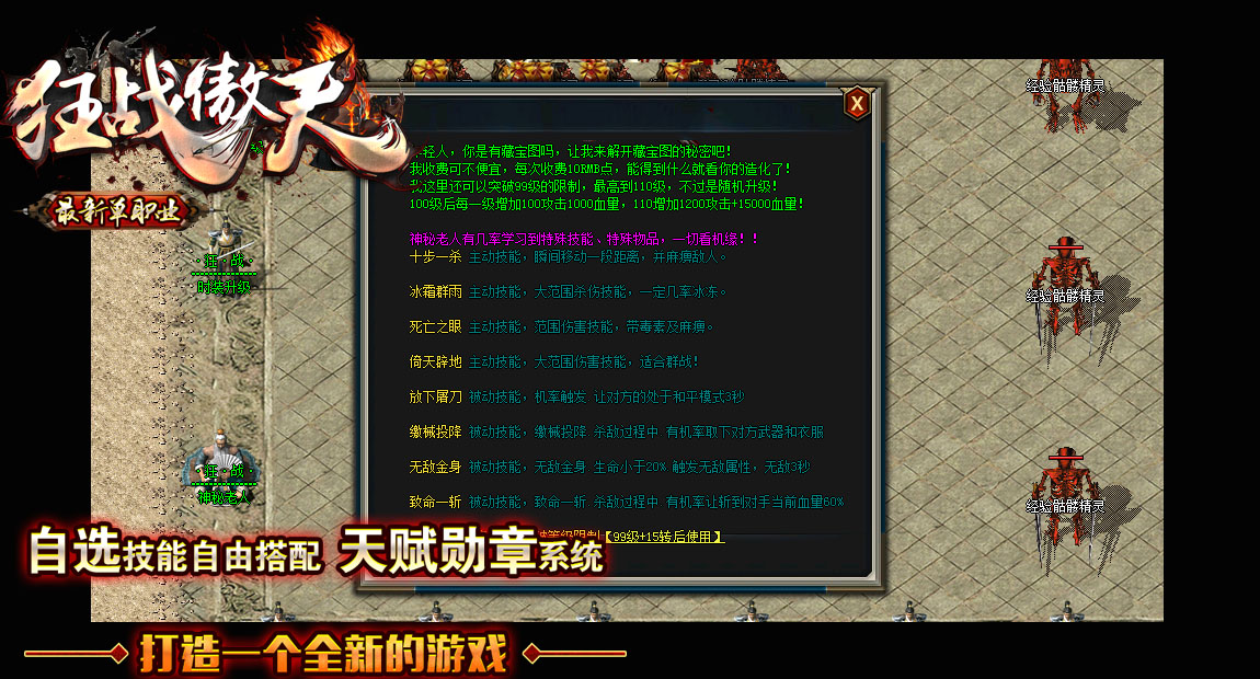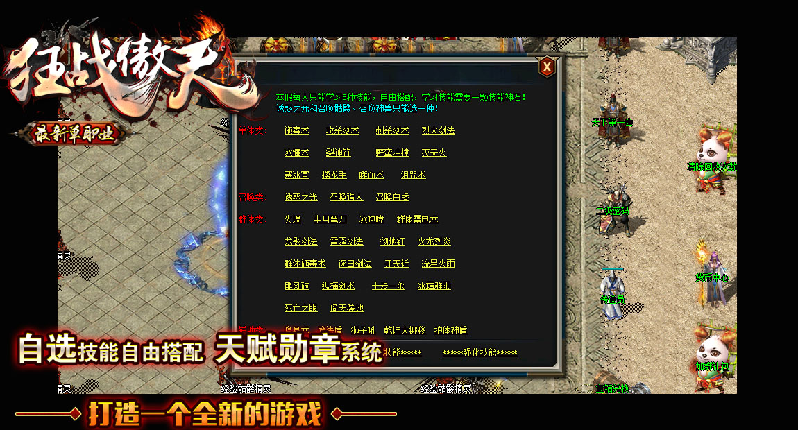 狂战傲天-平民之作,良心单职业,自选技能、自选天赋,绝对不一样的传奇玩法。