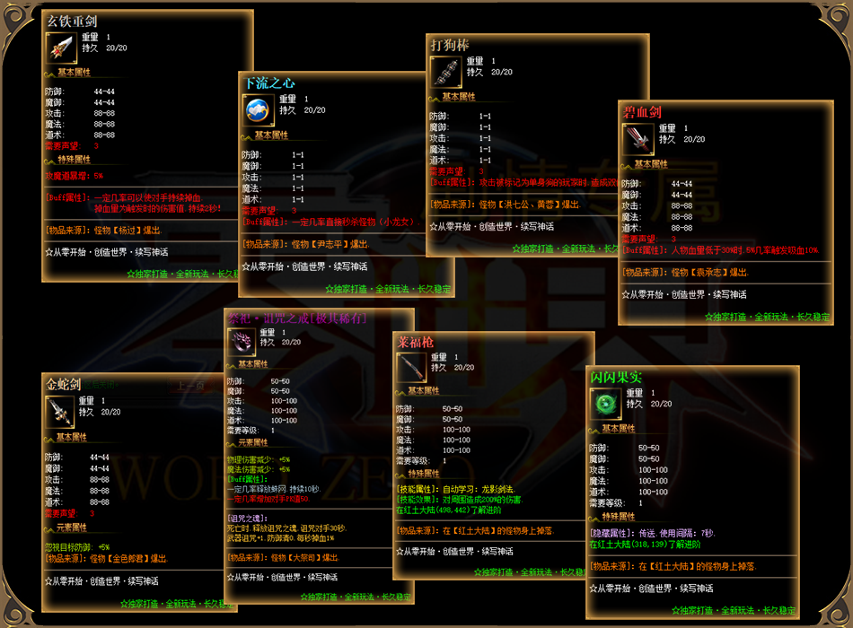 独家调控脸白爆一切爆率,大小BOSS都有可能出不同位置的特定专属装备及终极装备。