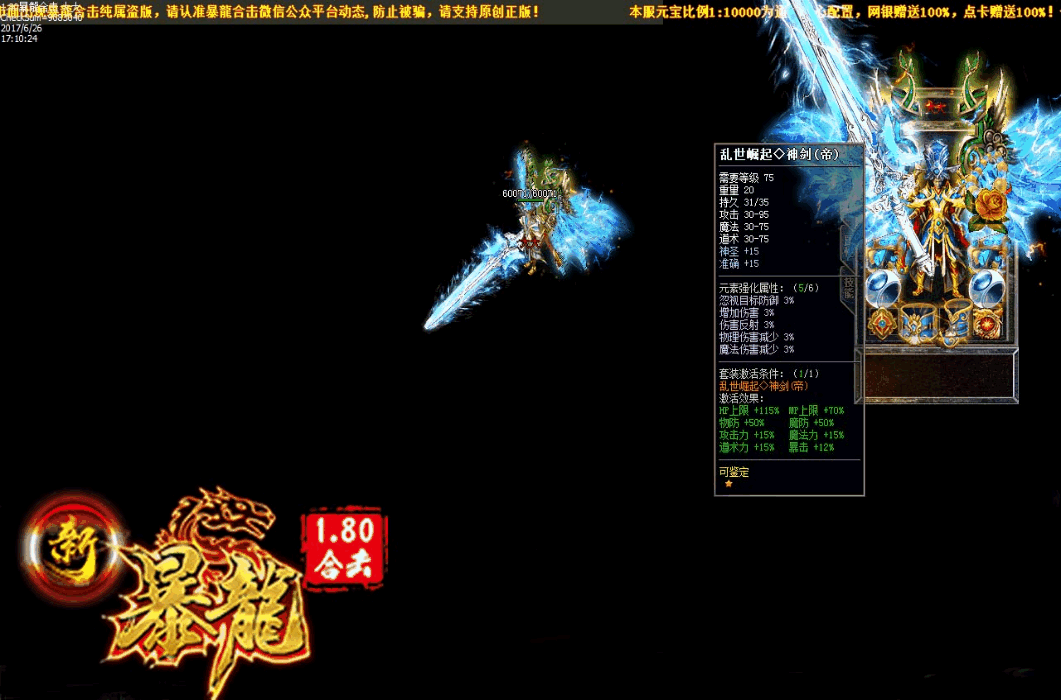 - 【元宝比例】:1元10000元宝,网银赠送120%,点卡赠送100%,多冲多送,测试默认赠送20%