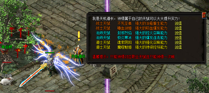 职业介绍:三职业每个职业都可在新手村领悟一种天赋哦,并且可以通过杀怪获取的天赋碎片提升天赋等级!![]() |