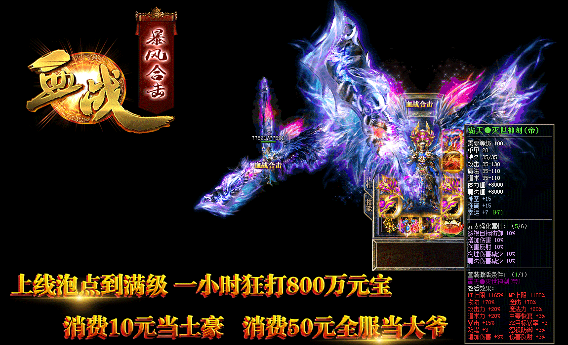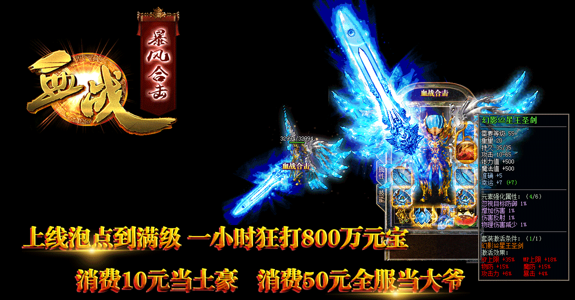 - 【新手起步】新人上线到土城右下角领取霸天大礼包,即可获得新手血石圣心