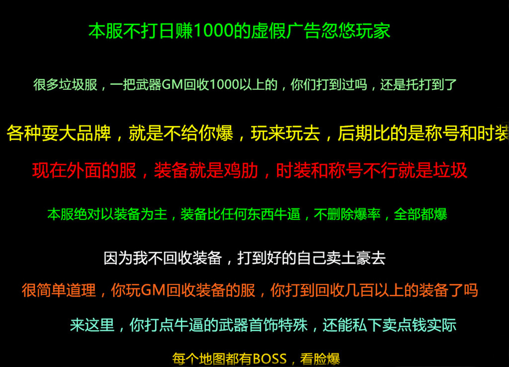2. 本服地图众多,新手上线建议双号,一个号泡点一个号打基础装备,快速发展,抢占BOSS,本服等级特别重要!!!