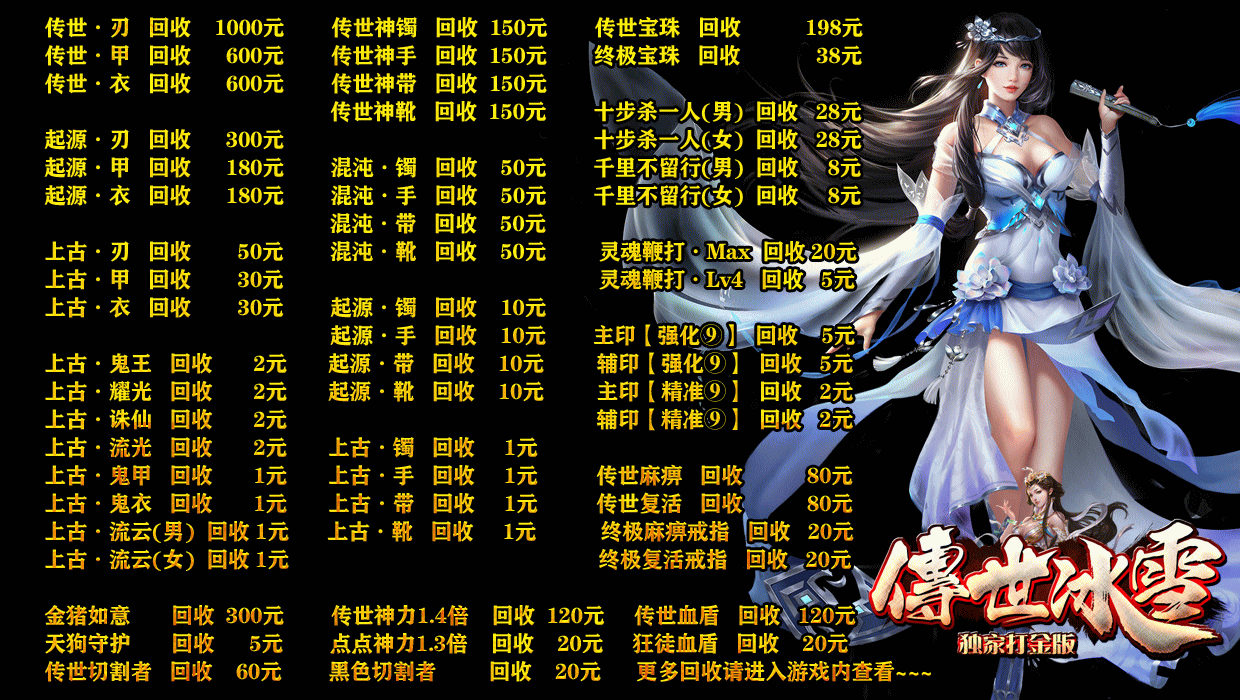 - 【充值比例】:赞助点充值1元1赞助点 金币充值1元10金币,本服充值无任何比例、优惠、请勿浪费时间