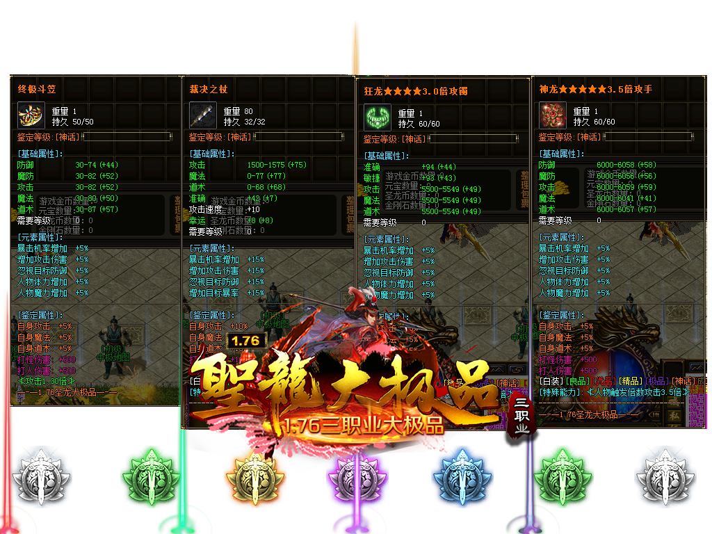 所有爆率全部开放,BOSS越强爆率越高。散人地图也可爆终极.