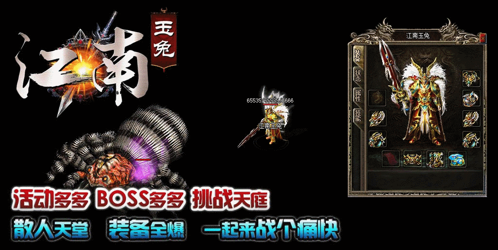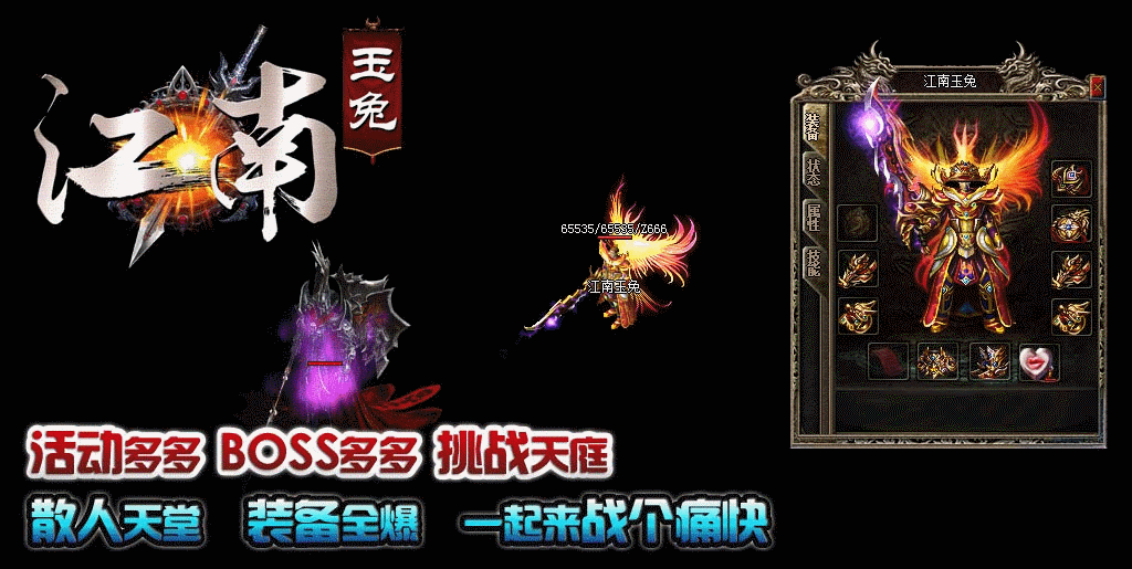•  游戏介绍⑥》》装备分级:主宰丶传奇丶玉兔丶热血丶终级套装。