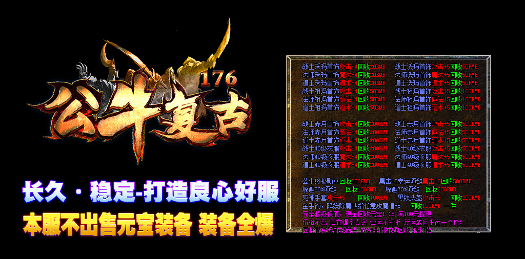 - 【公牛复古176】 刚开一秒 千人同屏 散人天堂 打金圣地 回收秒转