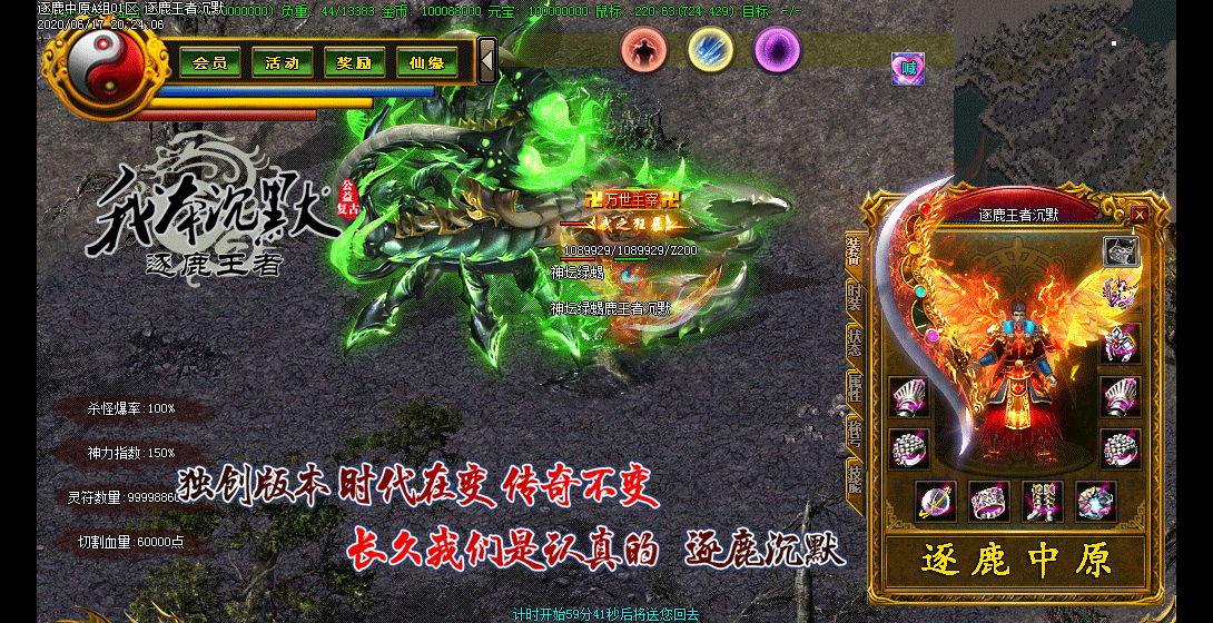 【版本介绍】:我本沉默,逐鹿王者新版,装备靠打,有时间就是爷