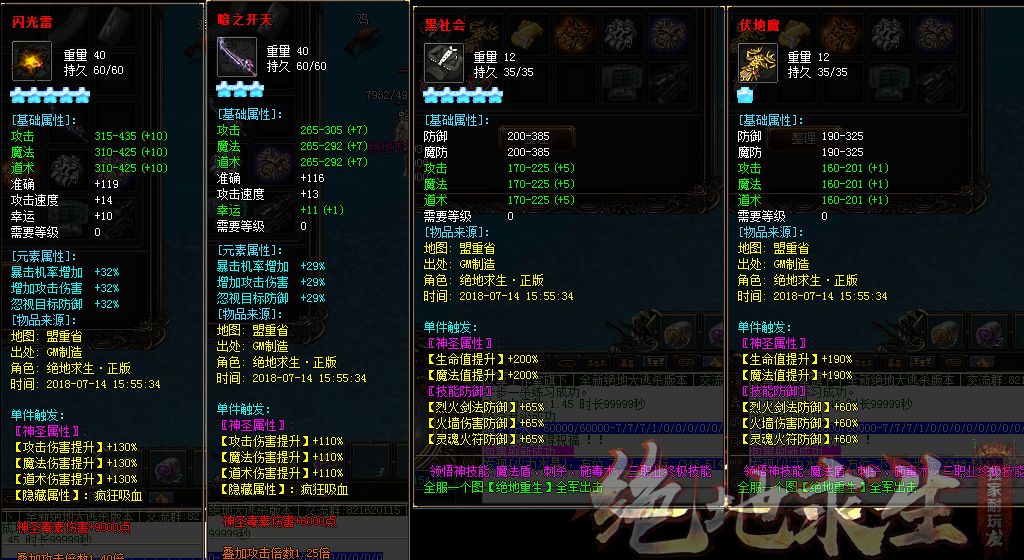 攻击:170-180 攻击伤害+40% 攻击元素属性+18 神圣毒伤+1600点 | 沃玛教主 高级BOSS空投爆出 |
