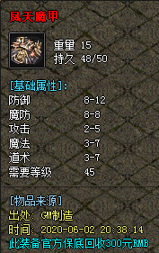 【RMB回收】 开天回收800元 镇天回收700元 玄天600元 凤天魔甲 300元 凰天魔衣 300元