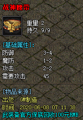 2.【装备分类】:商店套→沃玛→祖玛→赤月→雷霆→战神