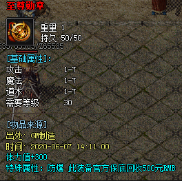 【特殊回收】 至尊勋章500元 任意+10攻魔道武器200元 至尊顶赞封号200元