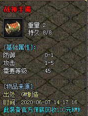 【装备爆率介绍】 1:袓玛装备: 爆率适中 难度:★☆ 祖玛装备:极品祖玛,白野猪等 2:赤月装备: 爆率一般 难度:★★☆ 赤月首饰:双头血魔,双头金刚,赤月恶魔等 3:40级-42级衣服:爆率一般 难度:★★★☆ 六新衣服:重装使者,各大新衣服地图BOSS等 4:怒斩武器: 爆率一般 难度:★★★☆ 所有5000血以上的BOSS 5:荣誉勋章: 爆率一般 难度:★★★☆ 魔龙力士,将战,巨蛾,教主,所有5000血以上BOSS 7:雷霆系列装备:爆率小低 难度:★★★★★☆ 雷霆系列装备衣服出处:所有12000血以上BOSS 8:屠龙系列武器:爆率很低 难度:★★★★★★☆ 屠龙出处:所有12000血以上BOSS 9:开天系列武器及凤天衣服:爆率很低 难度:★★★★★★★☆ 开天及凤天出处:所有12000血-55000血BOSS 【装备展示】 《本服所有装备均由BOSS暴出》