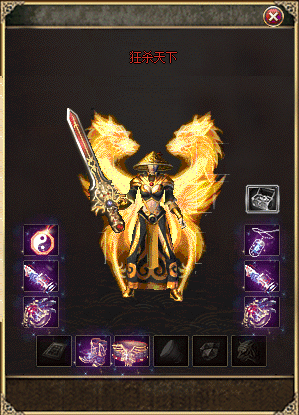 无尘装备:双头金刚.双头血魔.赤月恶魔,冰雪之城等等.