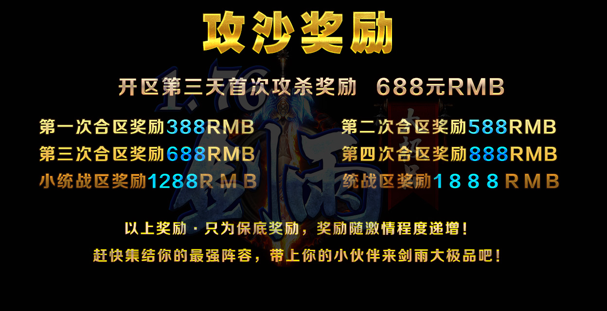 - 【攻城奖励】:新区拿沙奖励微信红包·