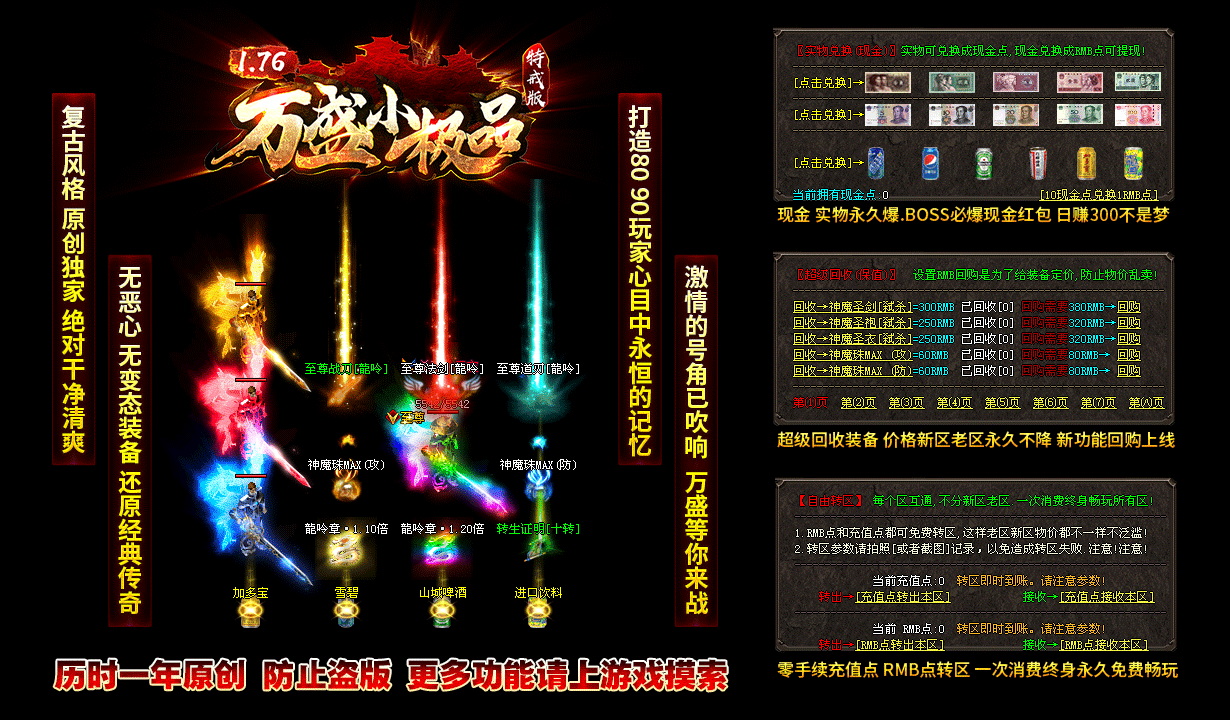 - 【万盛承诺】 十年开服经验!从设计环节到每个NPC细节再到每只怪爆率经过百次调试,保证公平 公正!!