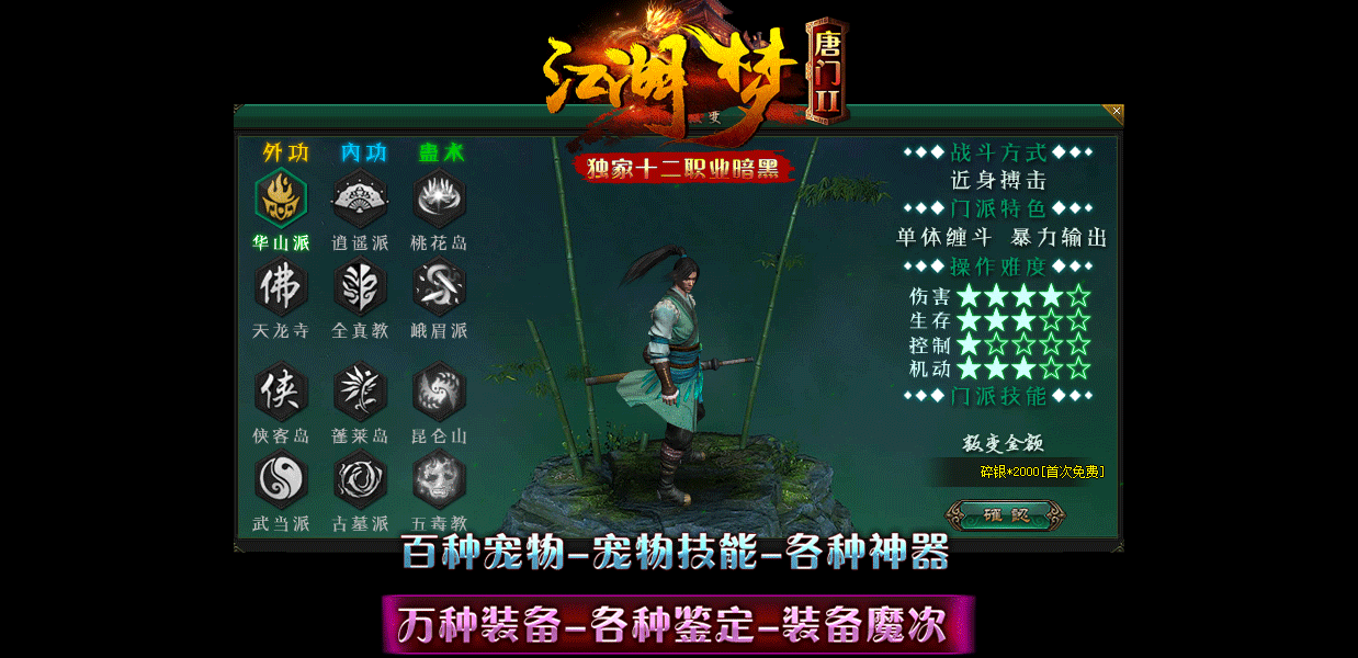 - 散人推荐门派-五毒(如果有首充礼包的武器 推荐天龙 桃花起手都不错) 最好是有个首充礼包.!