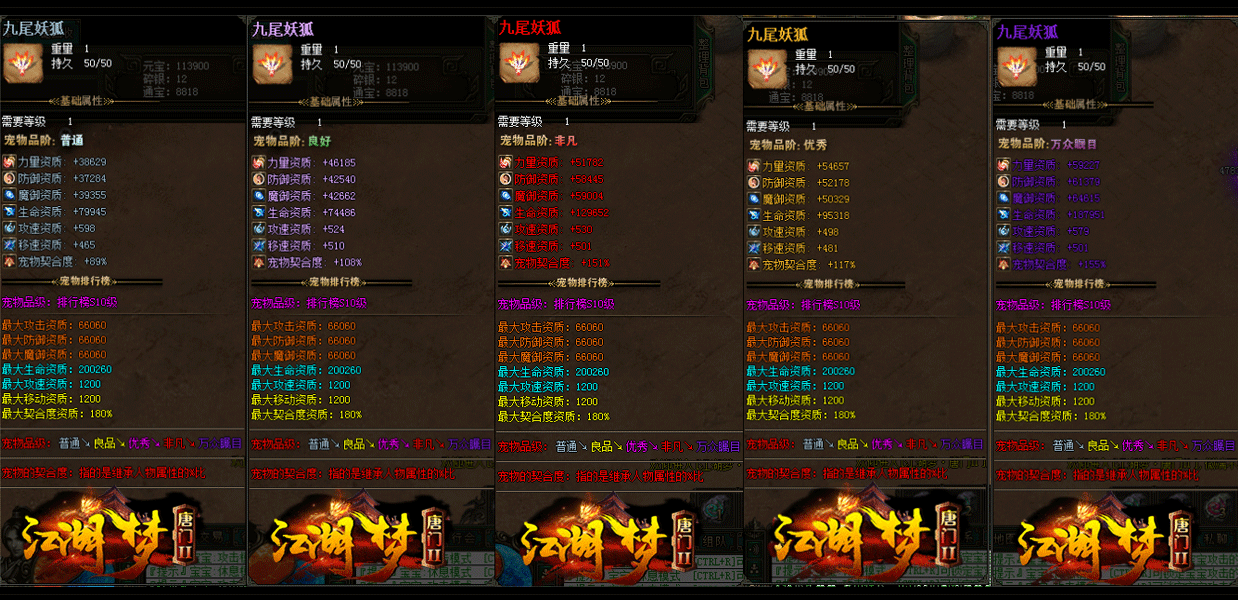 - 普通★级别装备 可以鉴定出2条随机属性,精品★级别装备 可以鉴定出3条随机属性,远古★级别装备 可以鉴定出4条随机属性,仙品★级别装备 可以鉴定出5条随机属性!