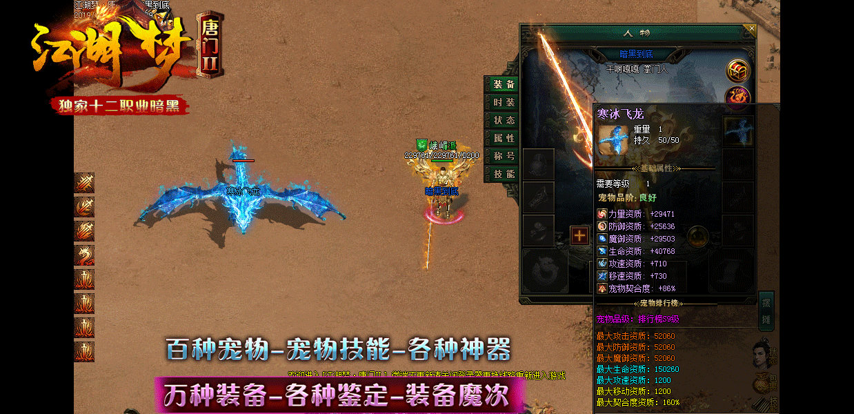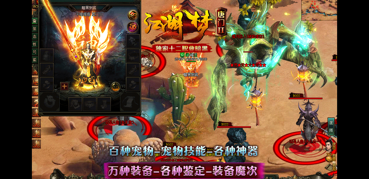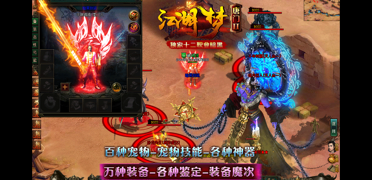 - 怪物介绍:本服装备(等级)分别是:普通→极品→远古→仙级→神话→[一词BOSS]→[二词BOSS][三词BOSS][四词BOSS]!